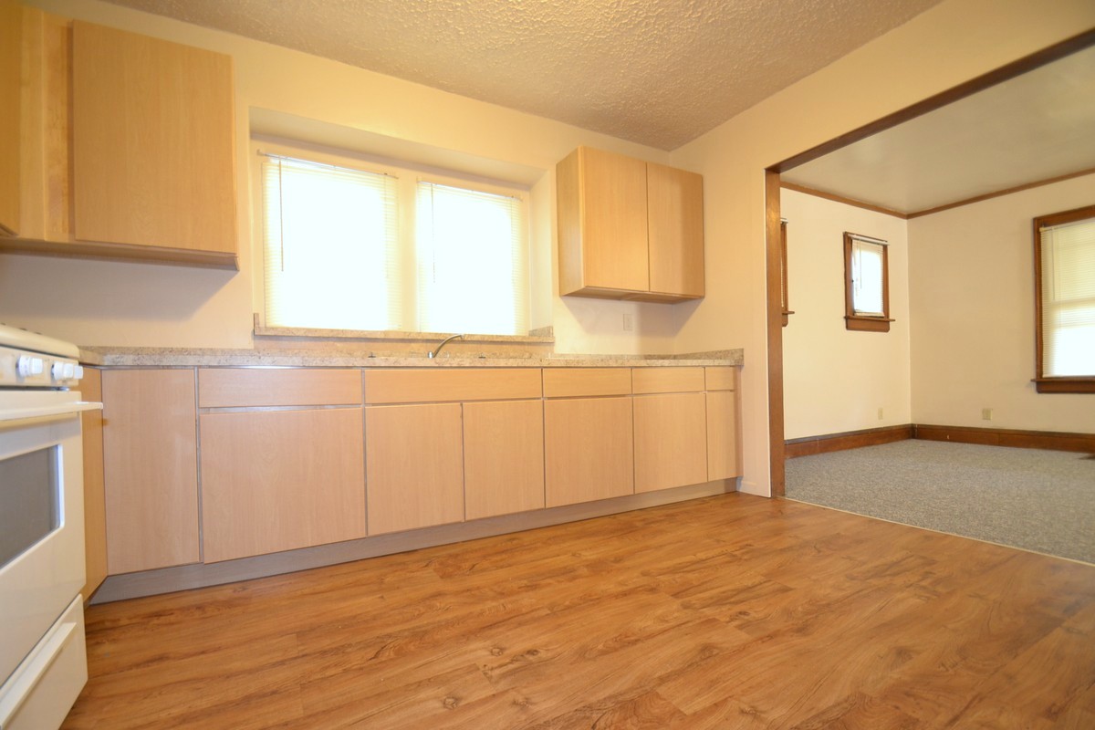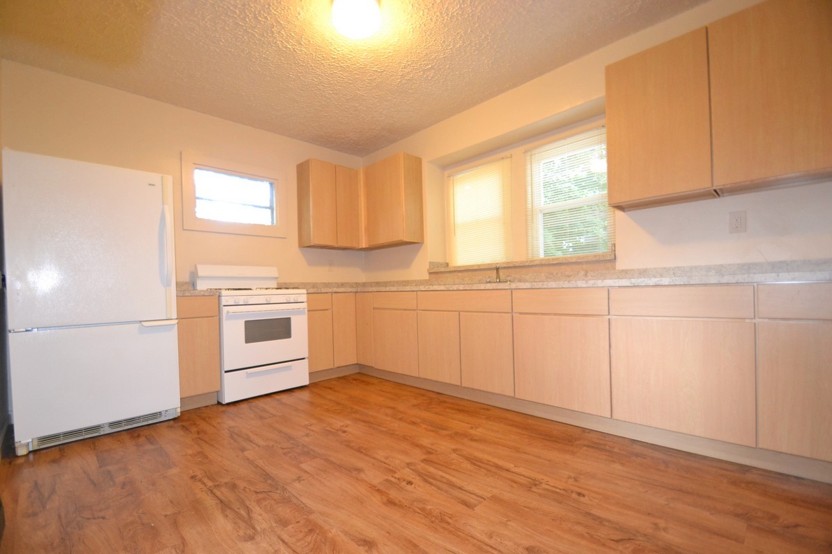 Very sharp house featuring a remodeled kitchen and bath, new carpet, large bedrooms with individual deadbolt locks, fridge and gas stove, washer and dryer provided, front porch, utilities included, and security lighting for the off-street parking.