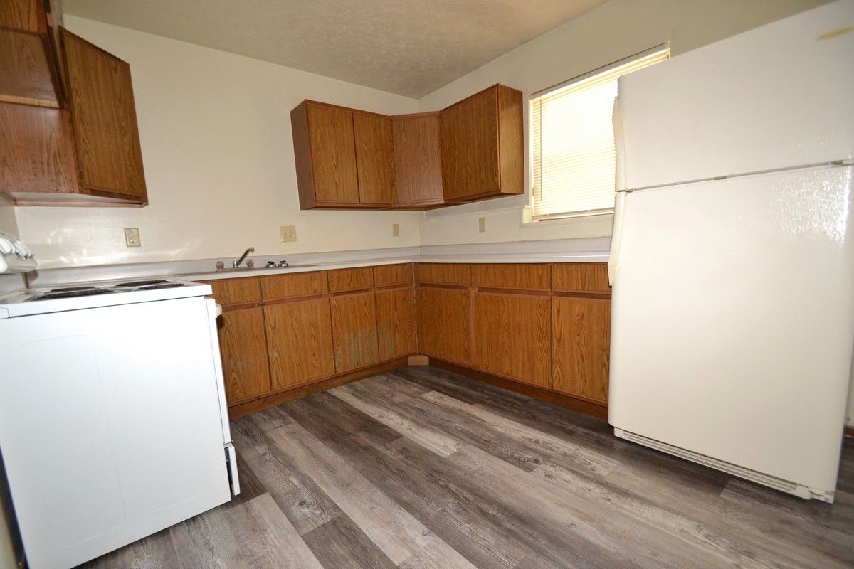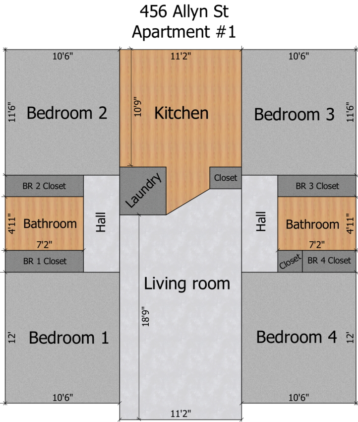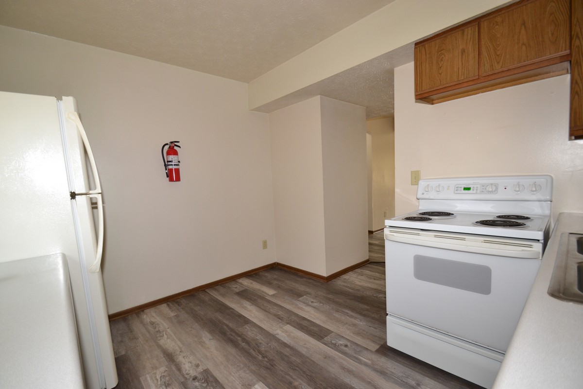 Modern and close to campus! The apartment features an alarm system, four large bedrooms and two full baths, full kitchen with stove and fridge provided, washer and dryer for laundry, utilities included, and security lighting for the off-street parking.