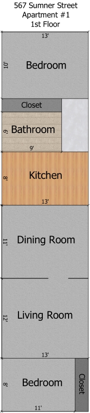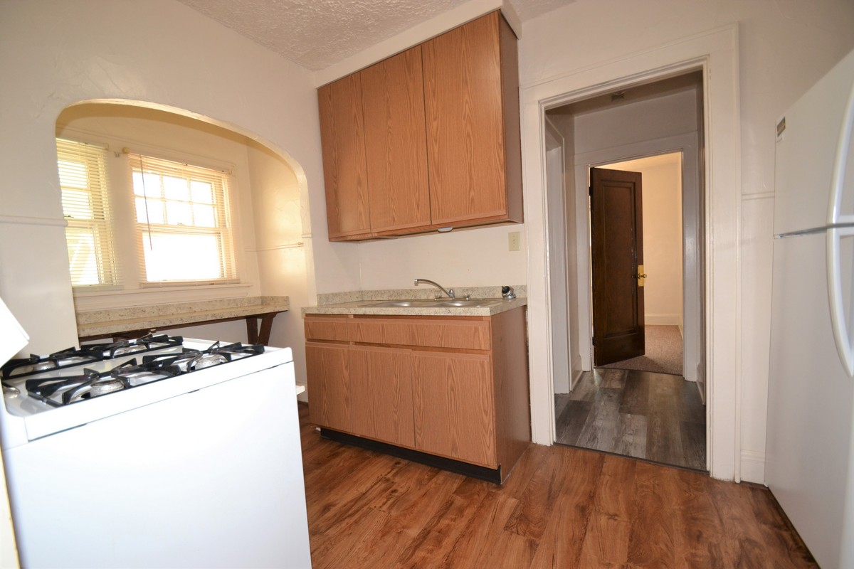 Spacious and modernized featuring a large living room and dining room, remodeled kitchen and bathroom, wood flooring in kitchen, off-street parking, laundry, and utilities included.